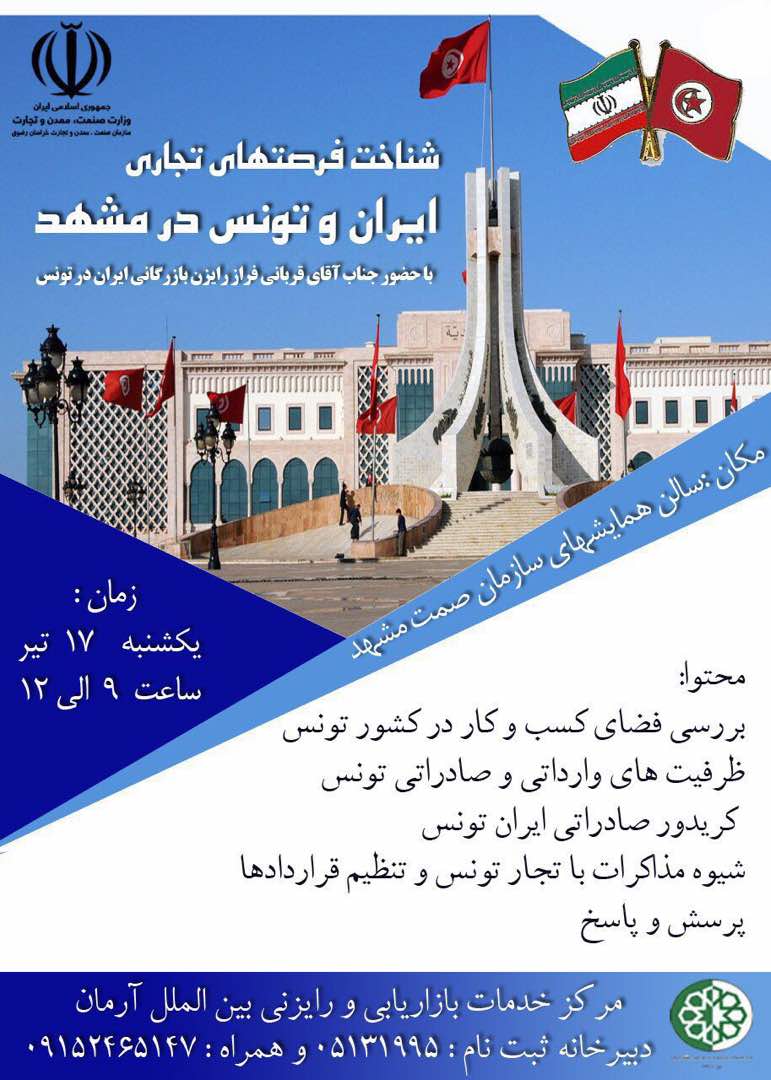 ۱۷ تیر ماه ۱۳۹۷ با سخنرانی رایزن بازرگانی ایران در تونس در سازمان صمت استان خراسان رضوی.